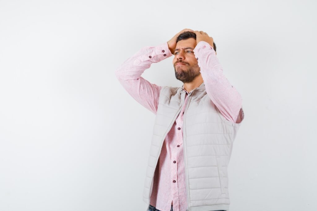 Bieda w Polsce mężczyzna trzyma się za głowę