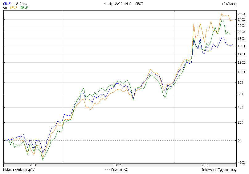 Wykres pokazuje, że względem wartości początkowej diesel nie powinien podrożeć do wartości 240%… a „ledwie” do 160% – tak samo jak ropa. 3 lipca 2020 roku benzyna PB95 kosztowała w Polsce 4,24 zł zaś olej napędowy 4,21 zł. To oznacza, że w najgorszym wypadku paliwo powinno kosztować teraz w Polsce maksymalnie 6,73 zł w przypadku diesla i 6,78 zł w przypadku benzyny. Na to wskazuje matematyka. Co dzieje się naprawdę… sami widzimy.